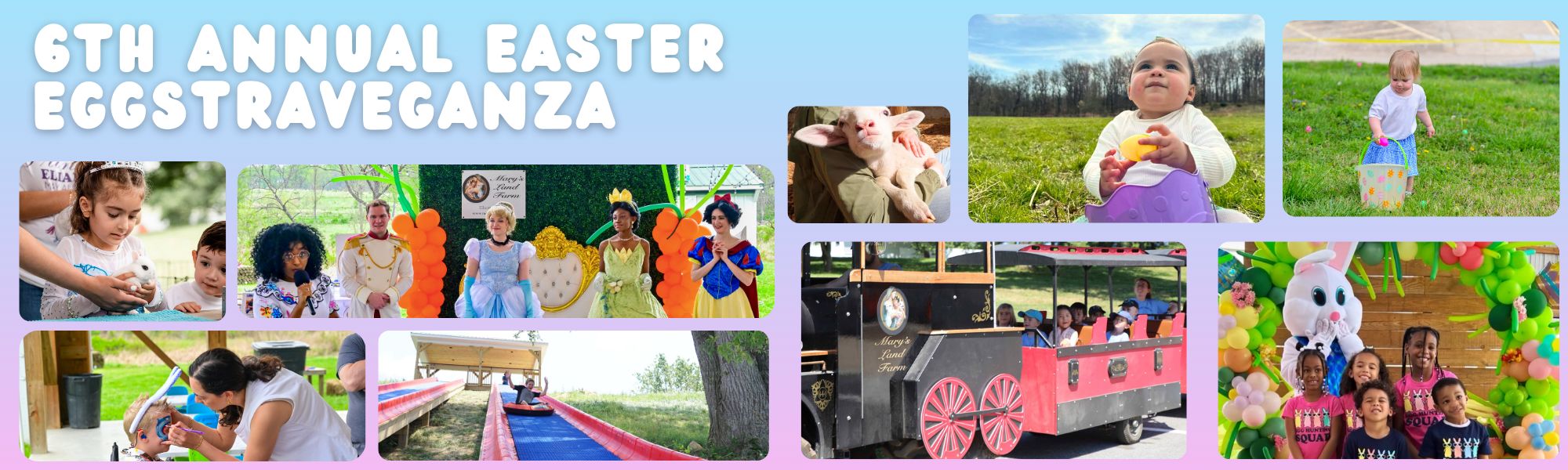 🎈 🐣 Easter EGGstravaganza at Mary's Land Farm - Egg hunts, a petting farm, princess meet-and-greets, a trackless train, moon bounce, food trucks, and photos with the Easter Bunny. The full farm experience. Final admissions at 2:30 PM.