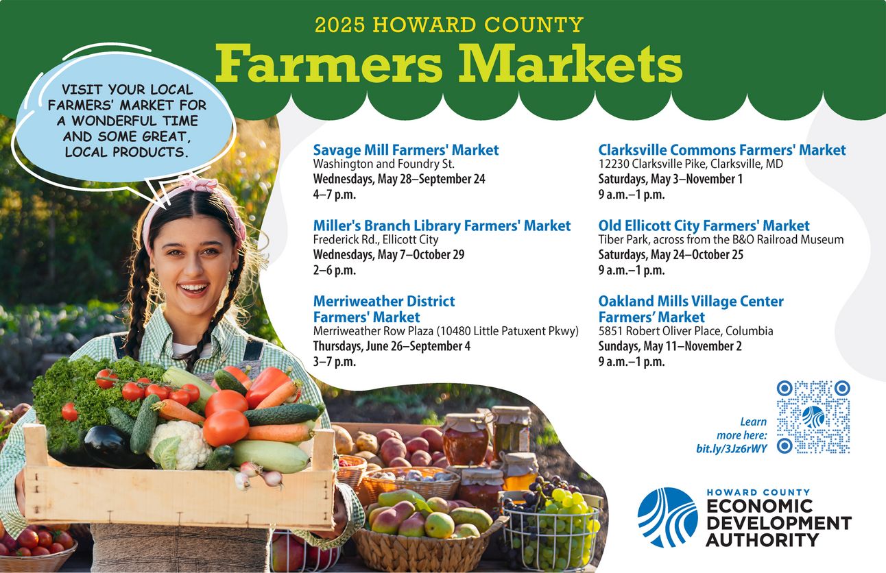 The wait is over… it’s farmers market season in Howard County! Whether you’re hunting for juicy strawberries, local honey, crusty bread, or farm-fresh eggs, the county’s markets have you covered. Markets are open across the area, including Ellicott City, Columbia, and Oakland Mills. Grab your tote bags and support local farmers, bakers, and makers. It’s more than shopping—it’s a community tradition. Expect live music, friendly faces, and the freshest finds of the season.